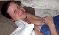 This is about when I ‘changed my mind’. When my mantra changed from “I’m gonna die” to “I changed my mind”, the smiles almost (and I hand it to the people there for controlling themselves) became laughter. Keith asked me what on earth I had changed my mind about and he certainly hoped it wasn’t about having a baby because that was one wish I was not going to get. I said something like “NO STUPID… I CHANGED MY MIND ABOUT DRUGS… I WANT THEM, I WANT THEM NOW!!!!” Again, please remember that I am envisioning another 2 hours of this intensity. Just as I finished my sentence, Ashley or Chris said “Why do you want drugs, the head is already out”.